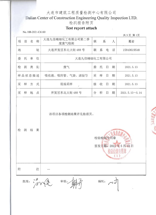 2021年5月份非甲烷總烴監(jiān)測信息公開